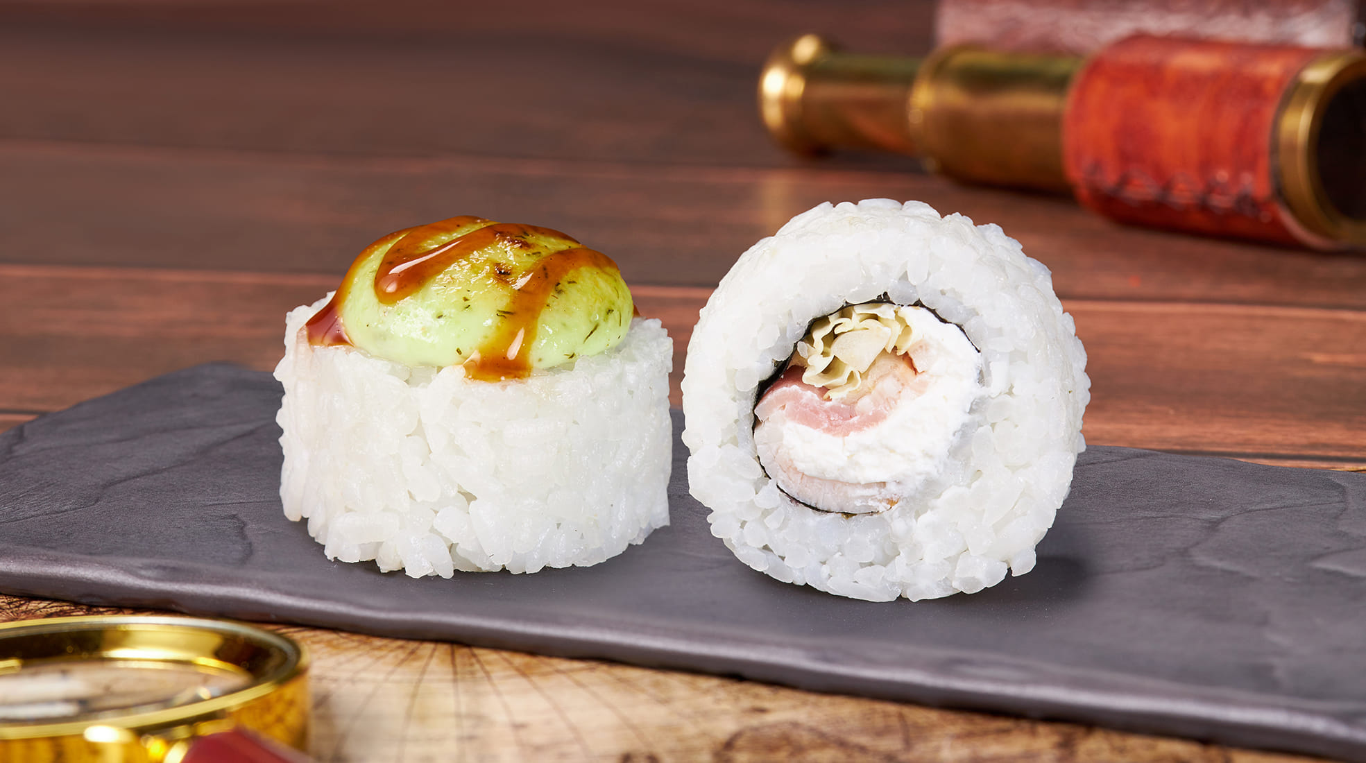 Состав: Крем чиз, бекон, пекинская капуста, укропный соус, унаги соус, рис, нори. *Не забудьте заказать имбирь, васаби и соевый соус. Они не входят в стоимость заказа. *Внешний вид блюда может отличаться от фото на сайте.